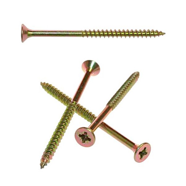 Univerzální vrut do dřeva s částečným závitem. Zápustná hlava TX torx. Ocelový, žlutý zinek.