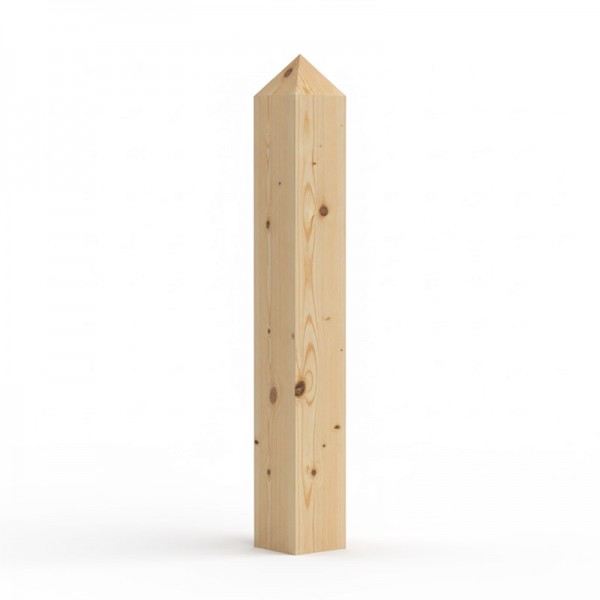 Smrkový hoblovaný sloupek s jehlanovitou špičkou. Sloupek je vyroben z jednoho kusu dřeva (nelepený).