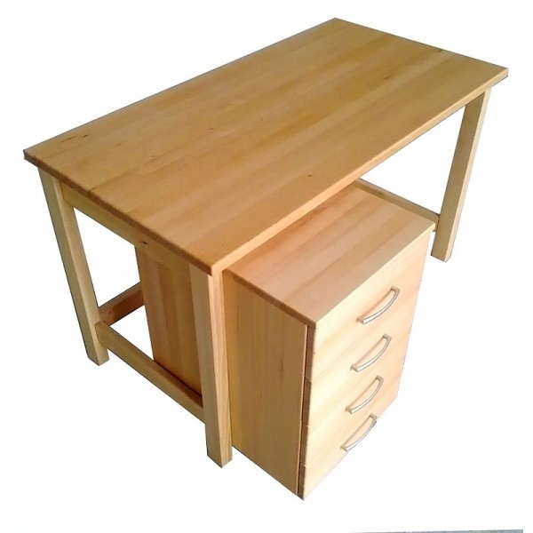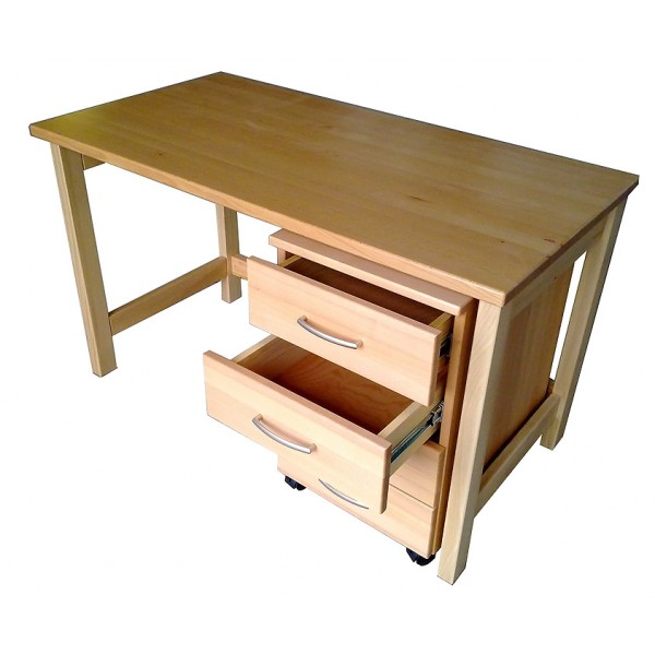 Pracovní stůl vyrobený z masivního bukového dřeva. Včetně čtyřzásuvkového kontejneru na kolečkách.